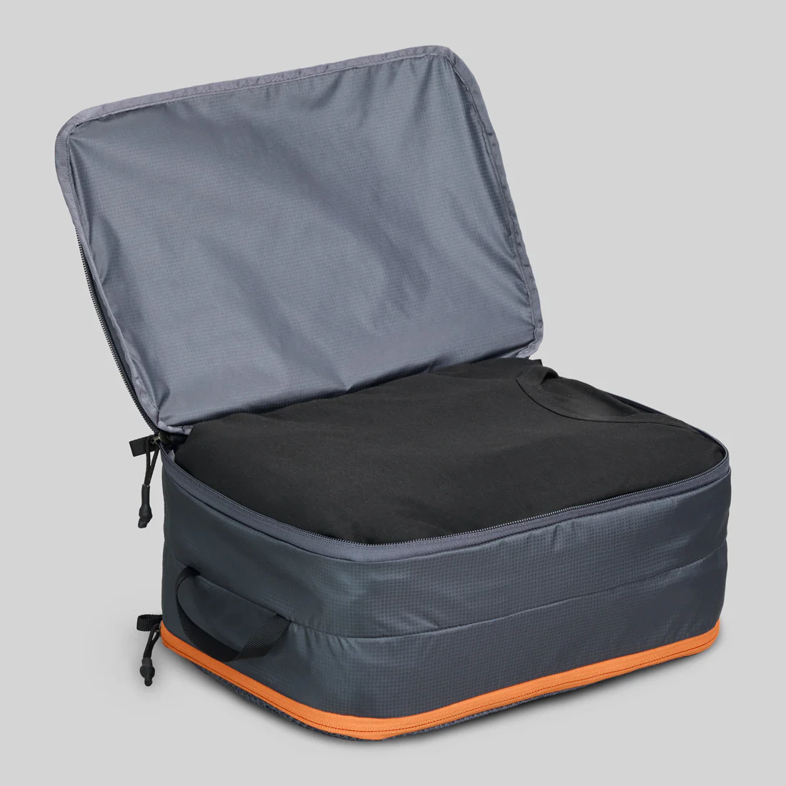 Keep clean and dirty clothes separated without the extra bulk—this dual-compartment cube does it all in one streamlined package. A custom mesh grid keeps fresh items visible and ventilated, while the enclosed Robic nylon side seals off the rest.